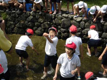 魚つかみを楽しんでいる様子です。