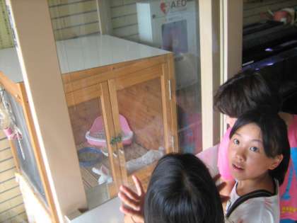 「うさぎが暑そう。」と子どもたちが玄関のウサギの世話をしてくれています。