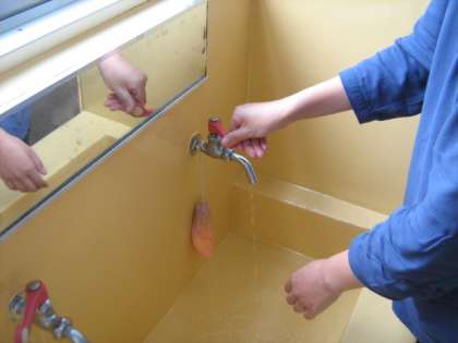 洗面台が汚れていたので、ペンキの塗り直しをしました。
