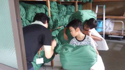 寝具の準備にとりかかっております。