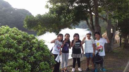 海のそばでポイントを担当している教職員が