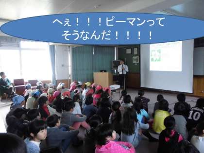 「へぇピーマンってそうなんだ。」と子どもたちも真剣にお話に夢中になっていました。