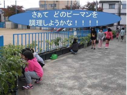 その後、育てたピーマンを収穫して、調理をしてみんなでおいしく食べました。