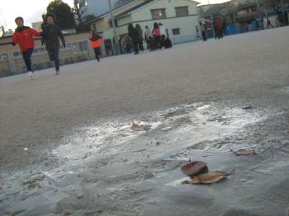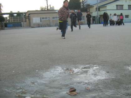 朝のランニングの子どもたちは1500mのタイムを計りました。