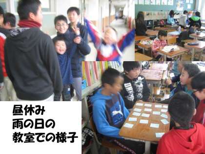 七三の子どもたちは雨の日の昼休みには、校舎内でたのしく過ごしています。
