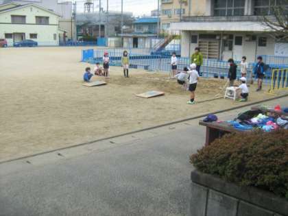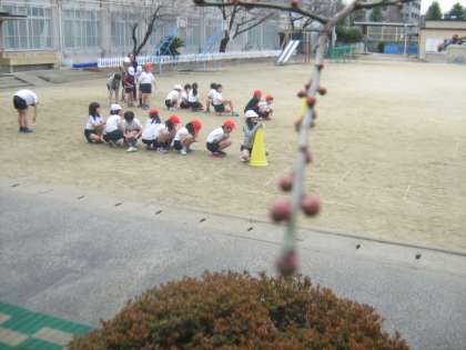 今日は曇り空でしたが、晴れ間には運動場で体育の授業がありました。