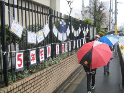 子どもたちは看板を作って学校の校門横に飾り付けしました。