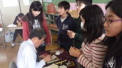 伝統工芸士で元PTAの山田さんに来ていただいて6年生が自分のはんこ作りに挑戦しました。