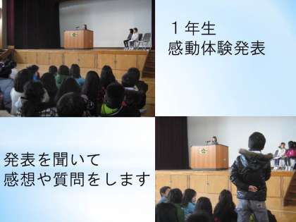 その後、賞状が渡され、1年生が感動体験発表をしてくれました。