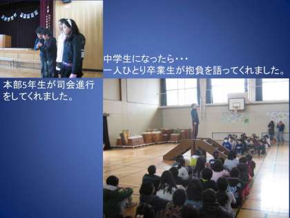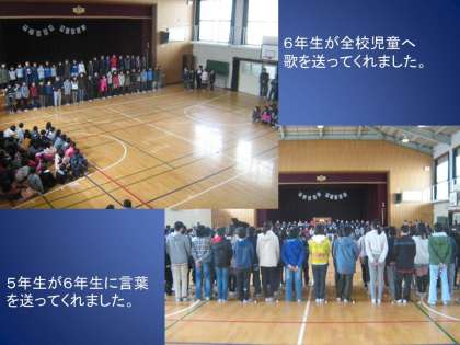 「思い出のアルバム」という歌を替え歌にして、全学年でそれぞれ制作し6年生に歌を送りました。