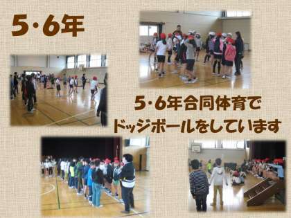 高学年はさっそく体育の学習で合同でドッジボールをしていました。