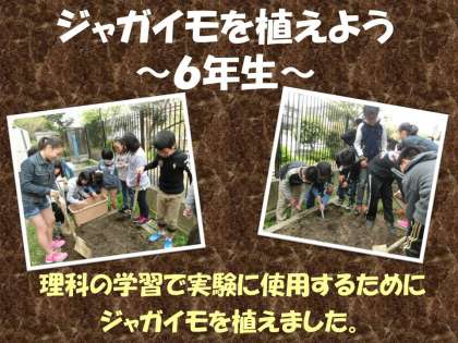 6年生の理科の学習でジャガイモを使うため,ジャガイモを植えました。