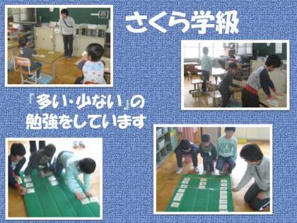 さくら学級はカードの数を机で数えてから後ろに並べて,カードが多いか少ないかについての学習をしていました。