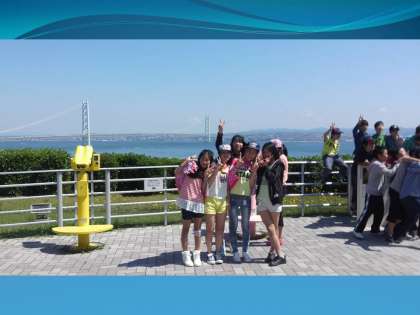 透き通るような青空のもと明石海峡大橋がとても美しく見えます