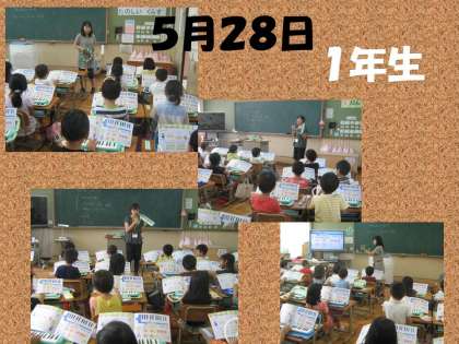 1年生は音楽で鍵盤ハーモニカの練習をしていました。