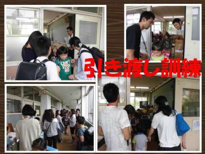引き渡し訓練では,名簿を確認して迎えに来てくださったお家の方に子どもを引き渡していきました。