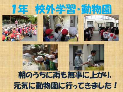 今日は朝のうちの雨も無事に上がり,1年生の子どもたちは元気に動物園に行ってきました。