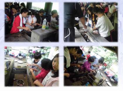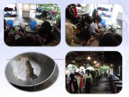第2炊飯場で魚をさばいて炭火でじっくり焼いて