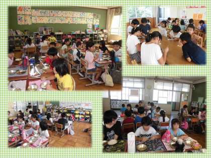 色々な学年の子どもたちが仲良く話しながら給食を食べ,食べ終わったら一緒に本を読んだり,遊んだりする姿が見られました。