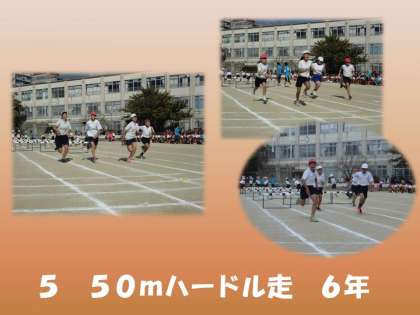 準備係の子どもたちや先生が,7mや5.5mなど,これからハードル走をする子の距離に合わせてハードルを並べ直しています。
