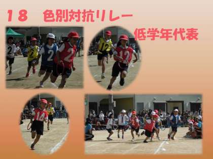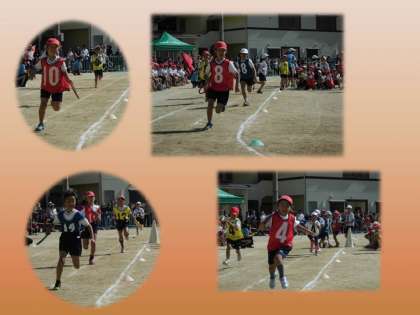午前最後の競技は,低学年の代表選手による色別対抗リレーです。