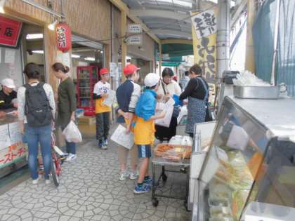 まず学校で出発式を行い,それぞれお店ごとに決意表明した後…