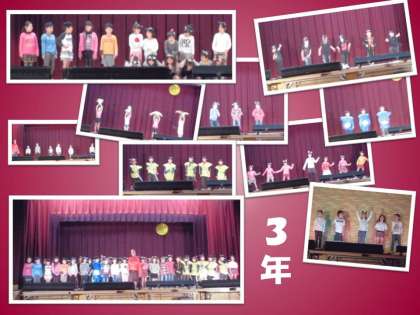 3年生は劇『CATS!キャッツ〜本当に大切なもの〜』です。猫たちが様々な特技を披露して,1番の猫を決めようとする夜のお話です。王様も堂々と猫たちのダンスやお笑いなどの特技を見守っていました。アイドルのダンスやチアダンス,ブレイクダンスなどバラエティ豊かな特技の数々でした。