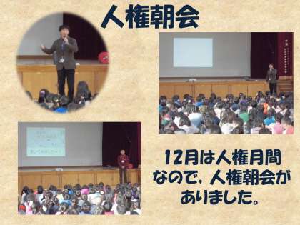 『人権』というと子どもたちにはなかなか難しく,朝から「今日は人権朝会だけど……『人権』って何かな?」と話している姿が見られました。