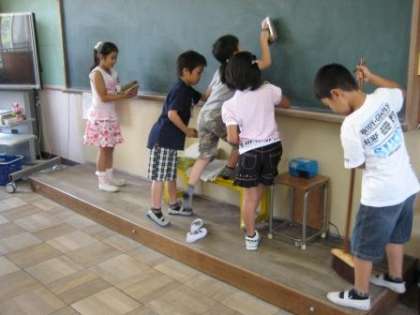 今日は特別な日なので教室の掃除から始めましょう。少し緊張している2年生(下)