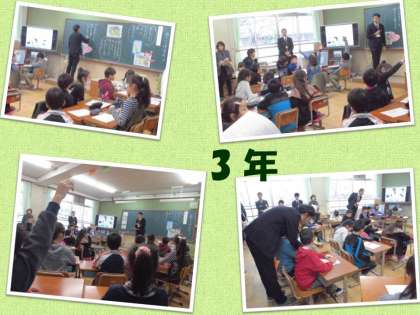 3年生は『雨のバス停留所で』で「周りの人のことを考えて」4−(1)
