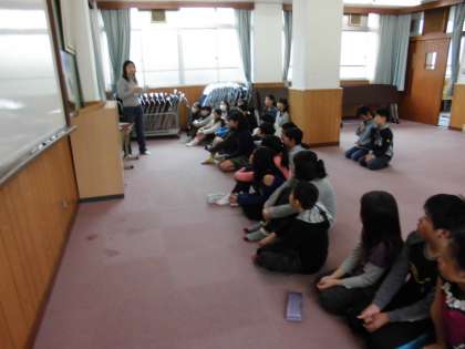 今年から新しく町班長になった子どもたちが集まって,明日の進め方や注意点などを教えてもらっています。