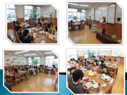 午前中には,教室で食の学習をしました。牛乳や牛乳に含まれるカルシウムのことについて学び,毎日給食で飲んでいる牛乳には,