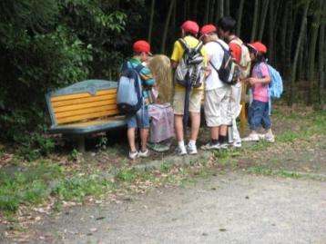 温室を出たところは南入口に近い大通りになっています。彫刻と木々のコントラストがきれいです。子どもたちは迷いながら,広い植物園のオリエンテーリングです。
