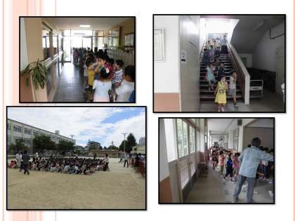 全校放送により運動場に避難するよう指示が出ると,子どもたちは静かに,そして落ち着いて運動場に避難を始めました。