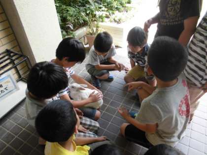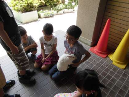 今週は中間休み,飼育委員会による「動物ふれあい会」が行われています。