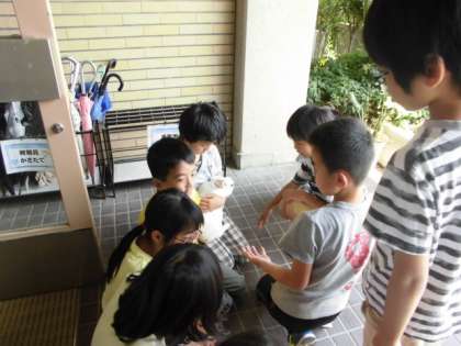本校で飼育しているウサギのミルクとふれあうことのできる時間です。飼育委員会の子どもたちが,上手に抱っこできるようにサポートしています。写真は今日の様子で,3年生がふれあいました。
