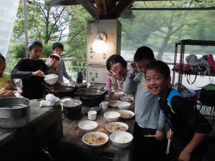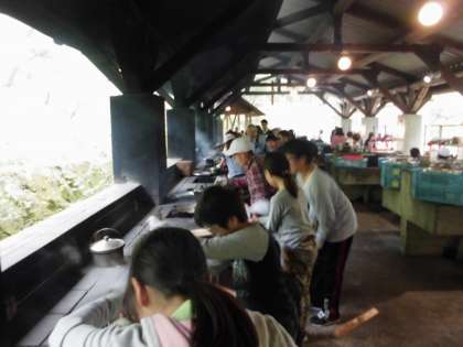 野外炊事1回目 〜鳥のすき焼き風煮〜