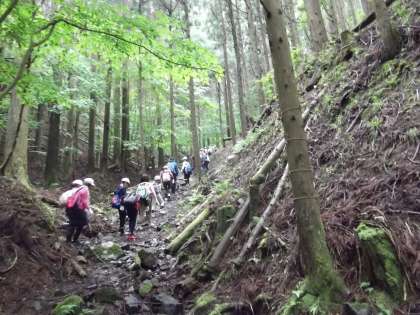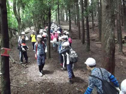 明け方,強い雨が降っていたので,実施できるかどうか心配でしたが,出発予定時刻に近付くにつれ天気が回復し,無事天狗杉登山に出発しました。9:30〜15:30までの長丁場でしたが,声を掛け合い,励まし合い,全員笑顔で帰ってきました。