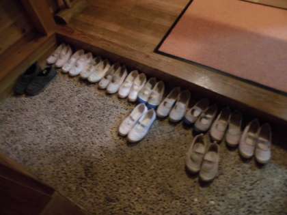 きれいにくつが並べられています。とても気持ちいいです。普段から学校で習慣になっていることが,ここでも生かされています。感動と感謝,ルールとマナーですね。