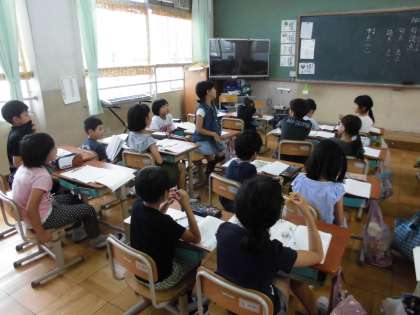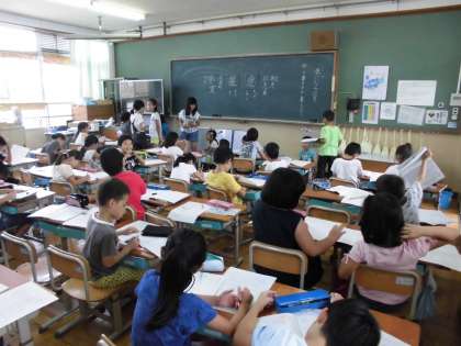 1年生の教室の後,3年生の教室に入ると,同じように国語の学習をしていました。
