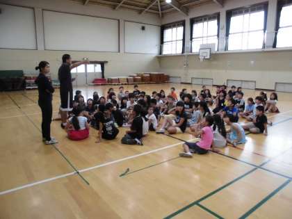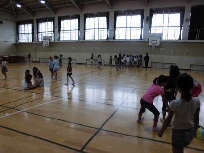 3年生は体育館に集まりました。プールに入ることがができなかったので,体育館で体を動かします。
