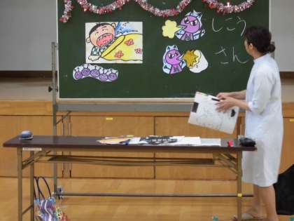 歯科衛生士さんが巡回で来てくださり,虫歯の原因についての説明や正しい歯みがきの仕方の指導をしてくださいました。