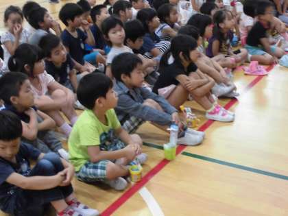 本日2校時,体育館で1年生の歯みがき指導を行いました。