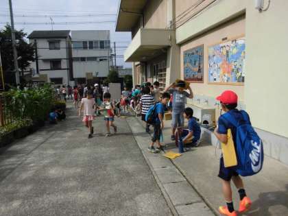 本日,4年生は「蹴上浄水場」や「疏水」を見学に出かけます。いつもより少し早目の集合ですが,みんな元気に登校しています。