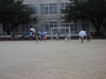 突然雨が降り出しました。かさを取りにいかなければならない子もいましたが,それでもきちんと行動できていました。