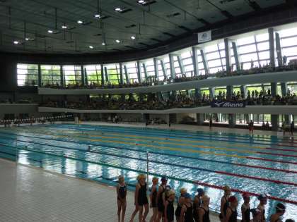 7月27日(水)に,アクアリーナで京都市水泳記録会が開かれ,6年生の12名が個人種目とリレー種目に出場しました。