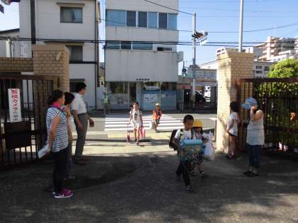 そんな暑さの中,PTAの方々が今日もあいさつ運動をしてくださっています。
