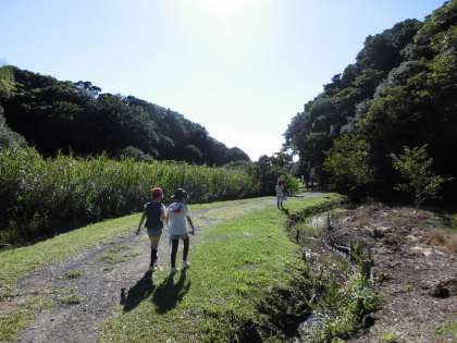 飲み終わると「うらやまたんけん」に出かけました。明日のナイトハイクで回るコースを中心に,みさきの家の山をたんけんしました。