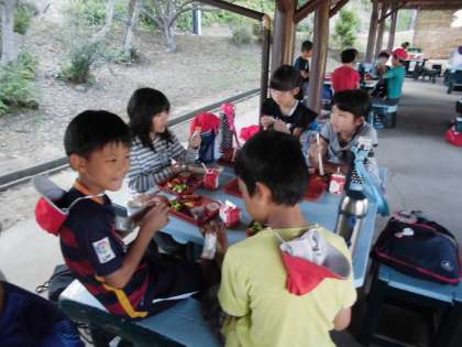 朝食です。今日も盛りだくさんの一日ですから,しっかりエネルギーを補給してほしいですね。
