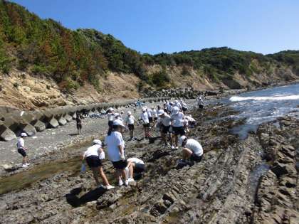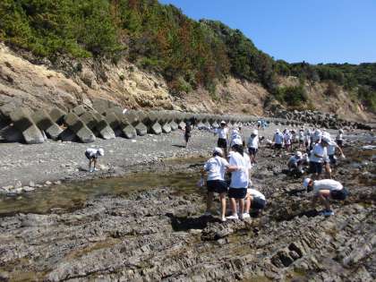 磯観察が始まると,子どもたちは一生懸命海の生き物を探し始めました。